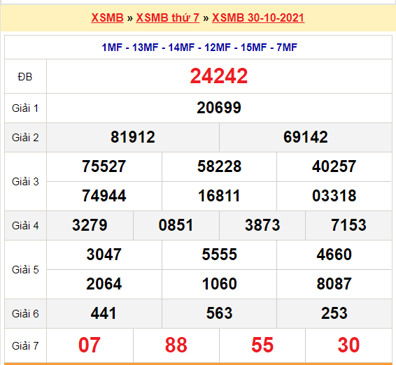 Xem lại bảng kết quả XSMB kì trước: